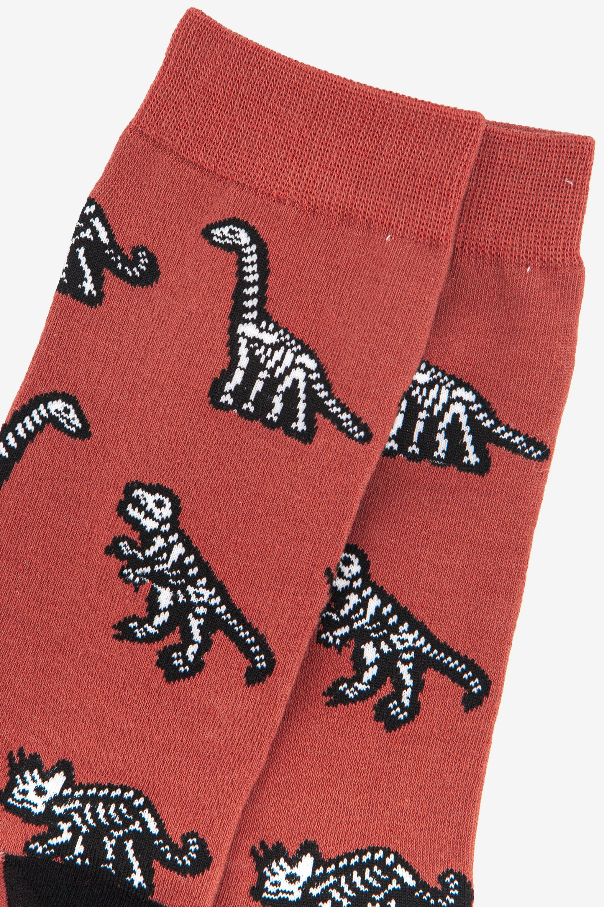 -70%Dinosaur Bones Bamboo Socks in Rust—