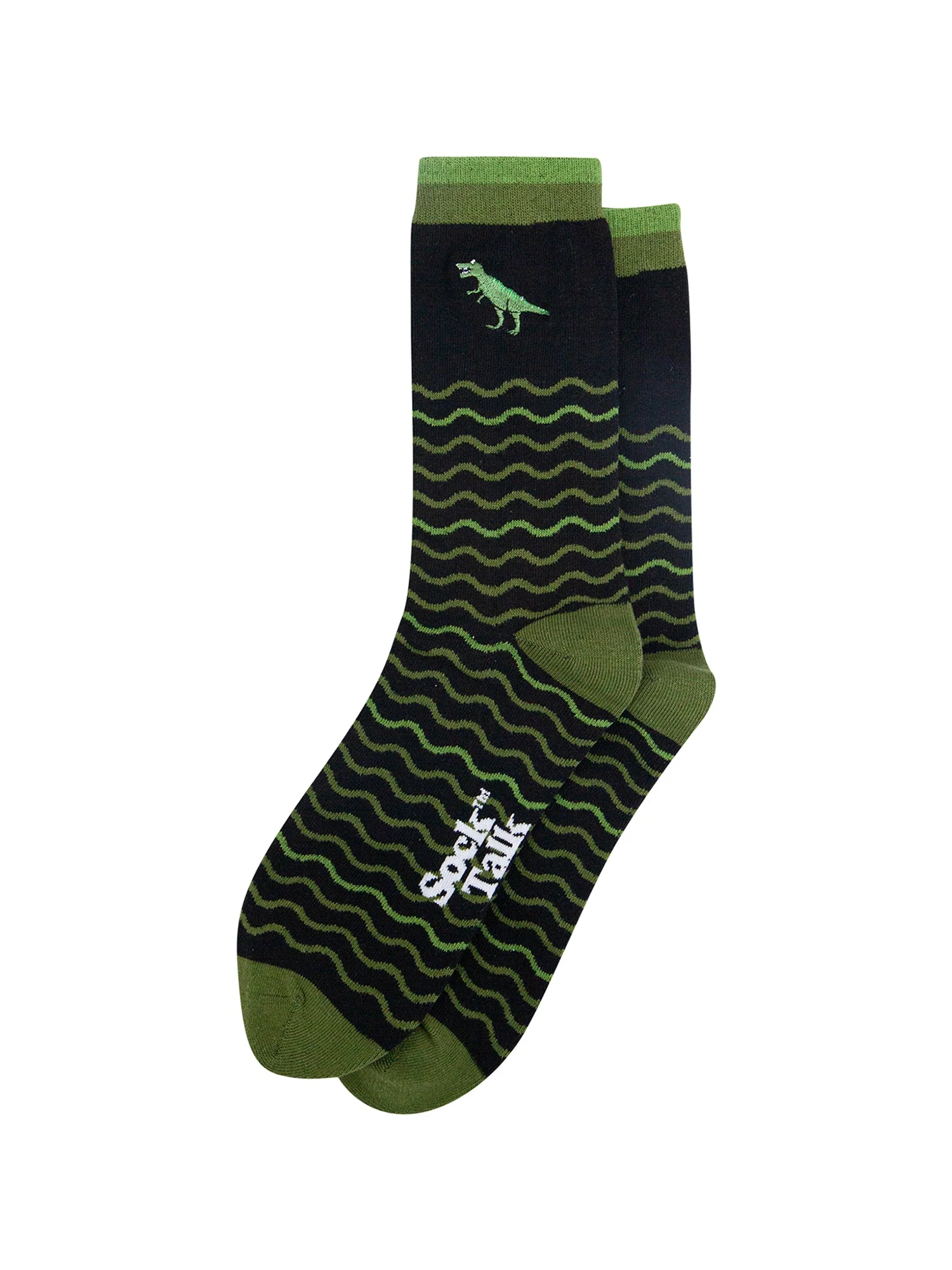 Embroidered T-Rex Wavy Striped Combed Cotton Socks in Black/Green