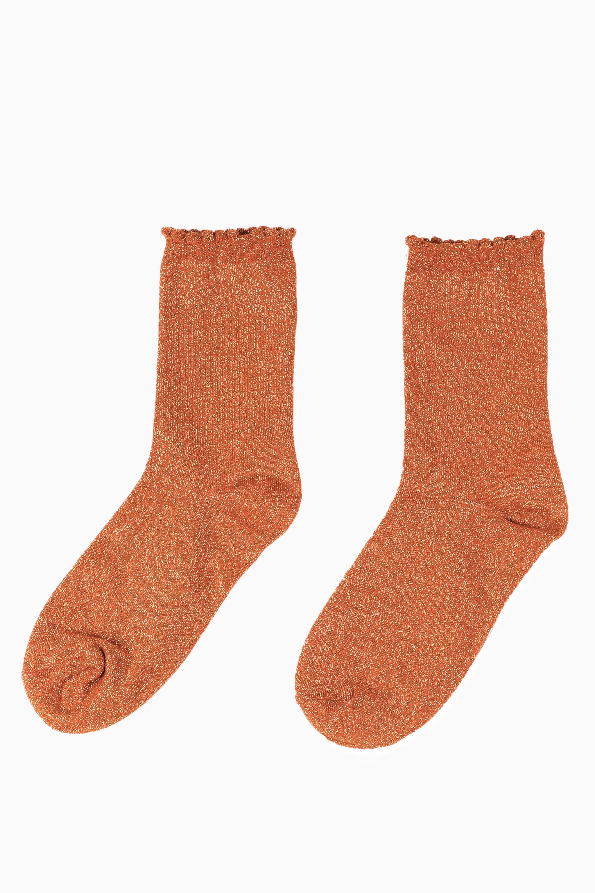 A touch of sparkle with these all over glitter ankle socks with a scalloped cuff.