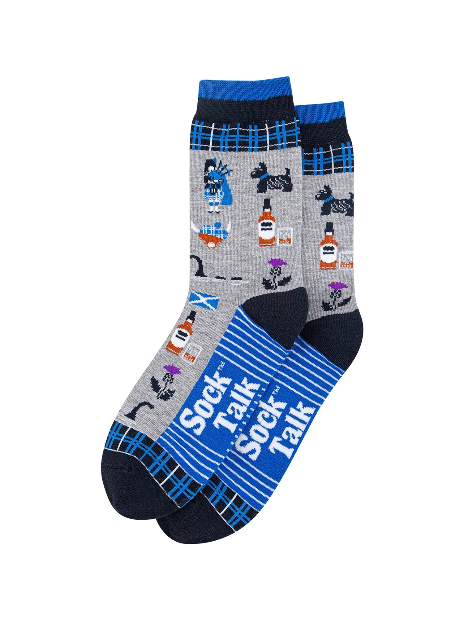 Fun novelty socks featuring iconic symbols of Scottish culture. Showcasing Scottish whisky, thistles, Highland cows and pipers, these fabulous bamboo socks are essential for anyone who loves Scotland or who embraces their Scottish heritage.